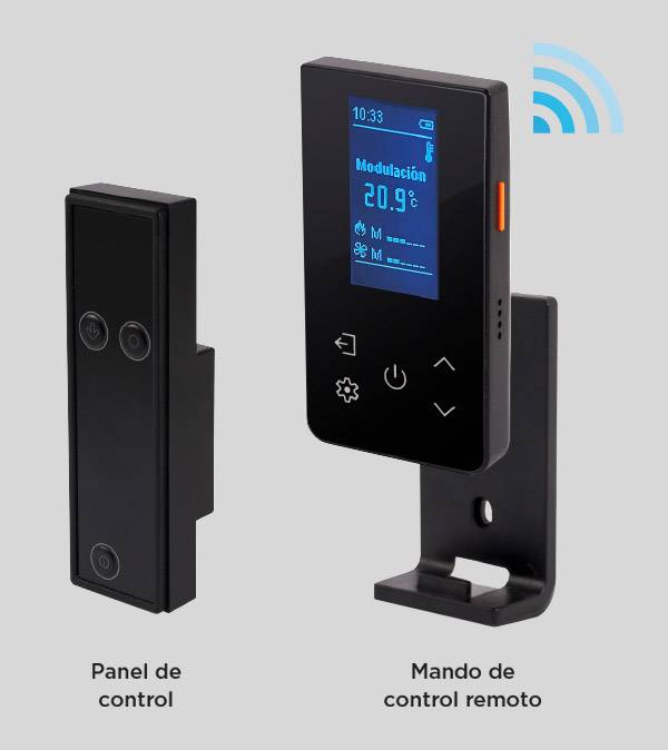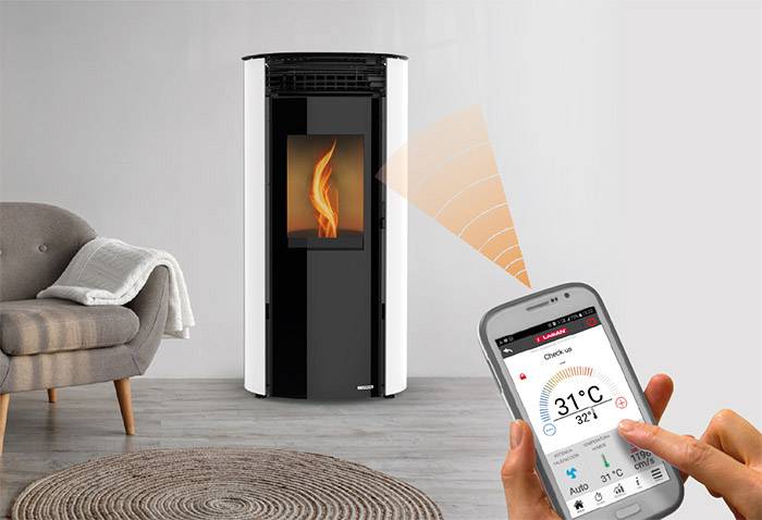 Tous les poêles à air Lasian disposent d’un système à distance wifi pour contrôler la température du logement où le poêle est installé, au moyen d’un smartphone à tout moment et de n’importe quel endroit, en plus de pouvoir être piloté directement sur l’écran de controle