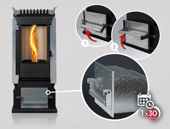 Le poêle permet un mode de fonctionnement à convection sans ventilateurs, comme s’il s’agissait d’un poêle à bois.
