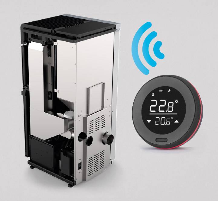 Il communique par radio avec le poêle comme une télécommande.