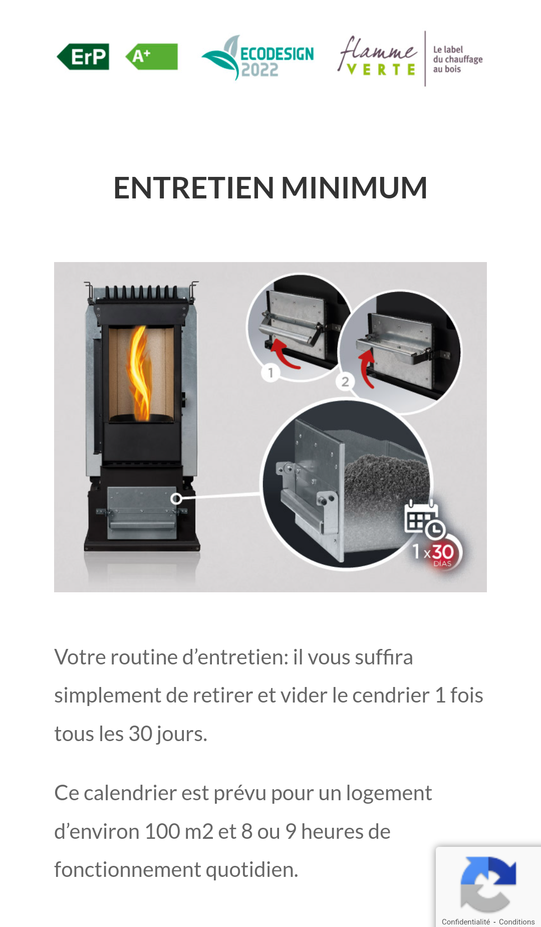 Votre routine d’entretien: il vous suffira simplement de retirer et vider le cendrier 1 fois tous les 30 jours.